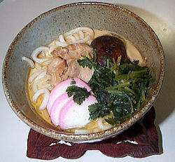 ・鶏モモ肉 1/2枚 ・生椎茸 4枚 ・かまぼこ 8枚 ・三つ葉 1束 ・うどん 2玉 ・だし汁 2カップ ・塩 ・みりん ・薄口しょうゆ ・柚子 |